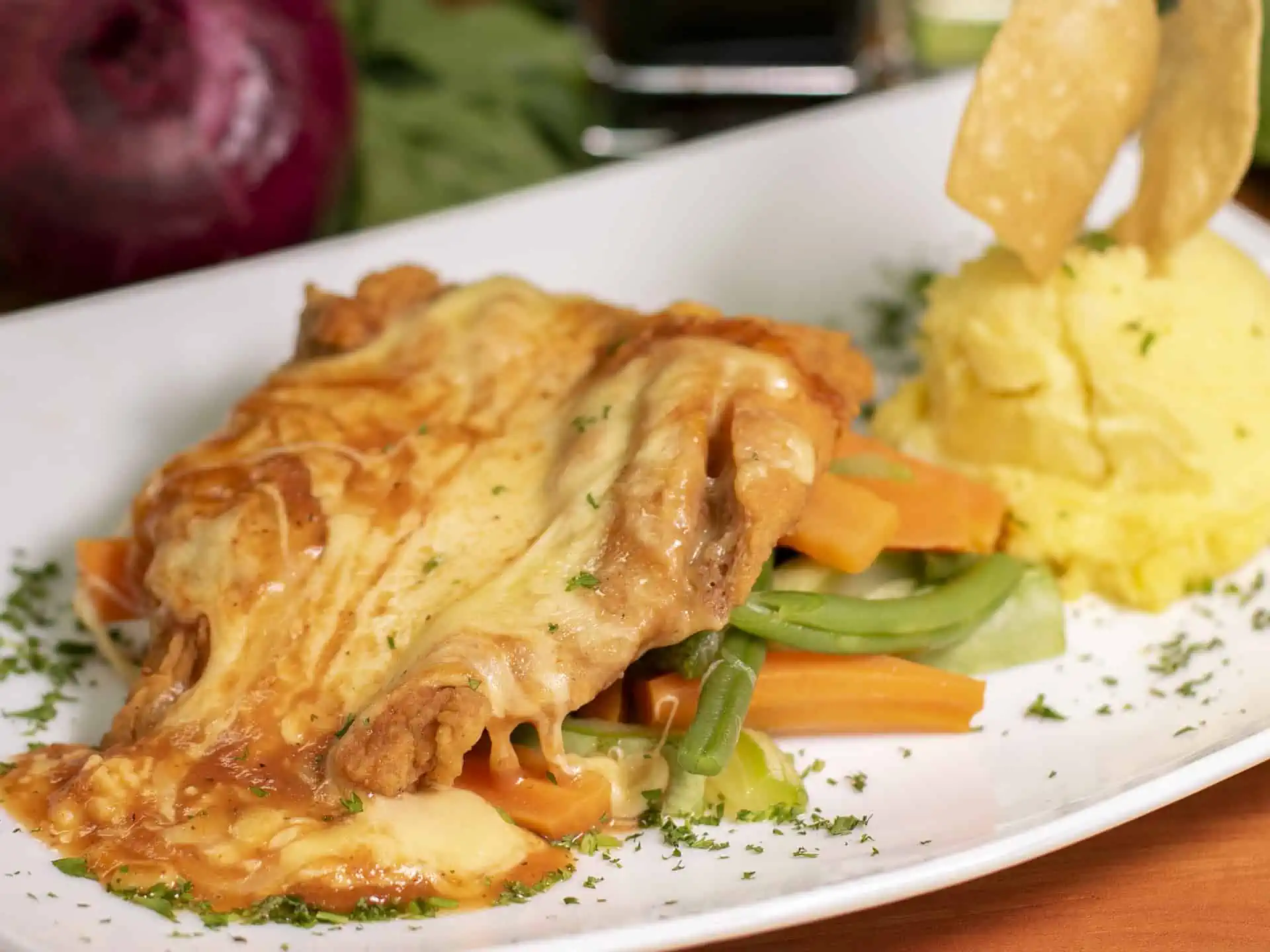 Acompañados de puré de papas y vegetales.